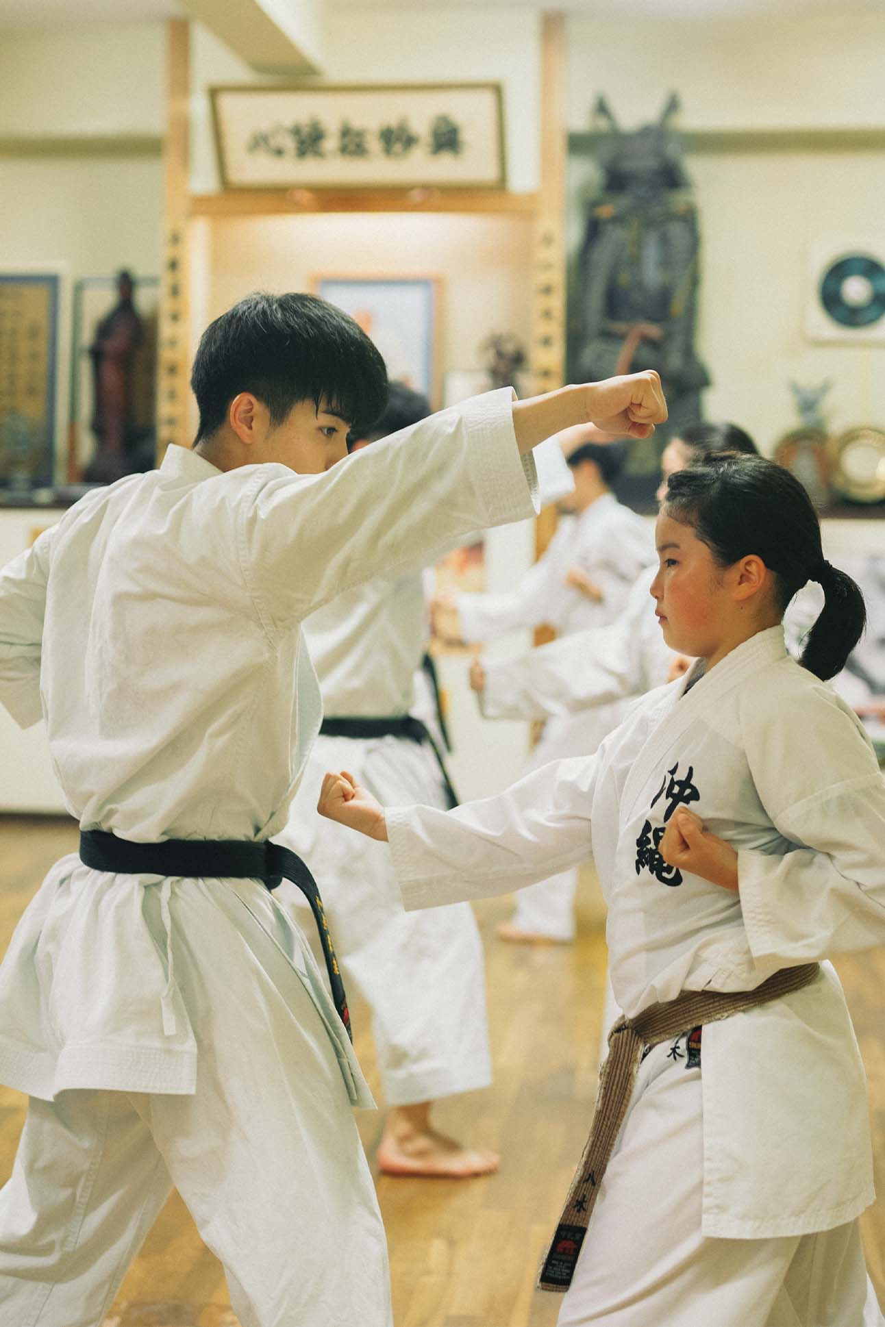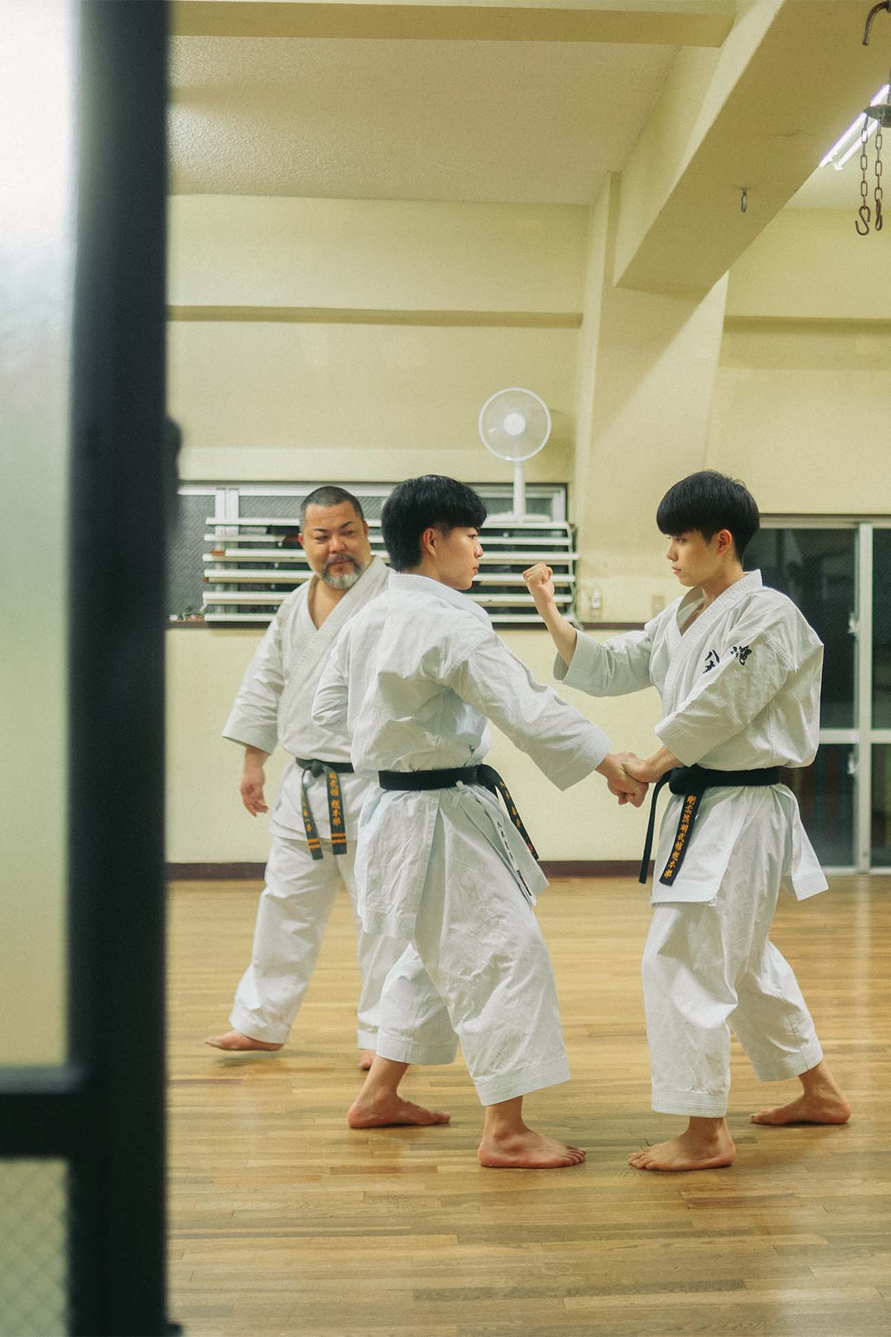一平の長男である八木竜平が、同年代の仲間と一緒に道場の中央に立っている。一糸乱れず動きながら型を演じ、その気合は熱気を突きぬけていく。兄弟や従兄弟と同じくして、竜平も幼い頃から稽古を積み重ねた。鋭く正確な動き、凛としたまなざしは鍛錬の成果だ。しかし、一平が最も鍛えたいのは自身の精神だという。「一番嬉しいのは、私の生徒が立派な人間であると人から言われることです。それこそが私たちの道場の哲学ですから」と語る。