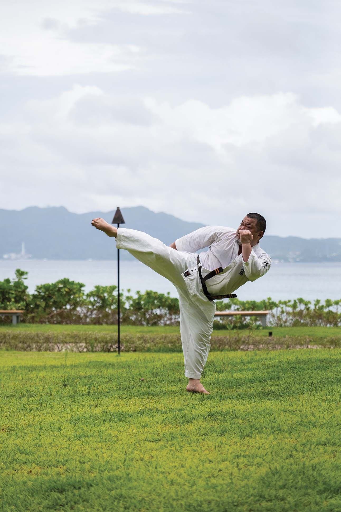 ハレクラニ沖縄から宿泊客に空手のクラスを教えて欲しいと打診されたとき、一平は喜んだ。なぜなら、同ホテルが戦いの技術を教えることよりも、空手の背景にある哲学を広めることに関心を持っていると知ったからだ。「大切なのは、体を鍛え、技を磨き、心を育成すること。相手を打ちのめすことではありません。私に、空手の哲学に焦点を当てるように求めた唯一のホテルがハレクラニだったのです」