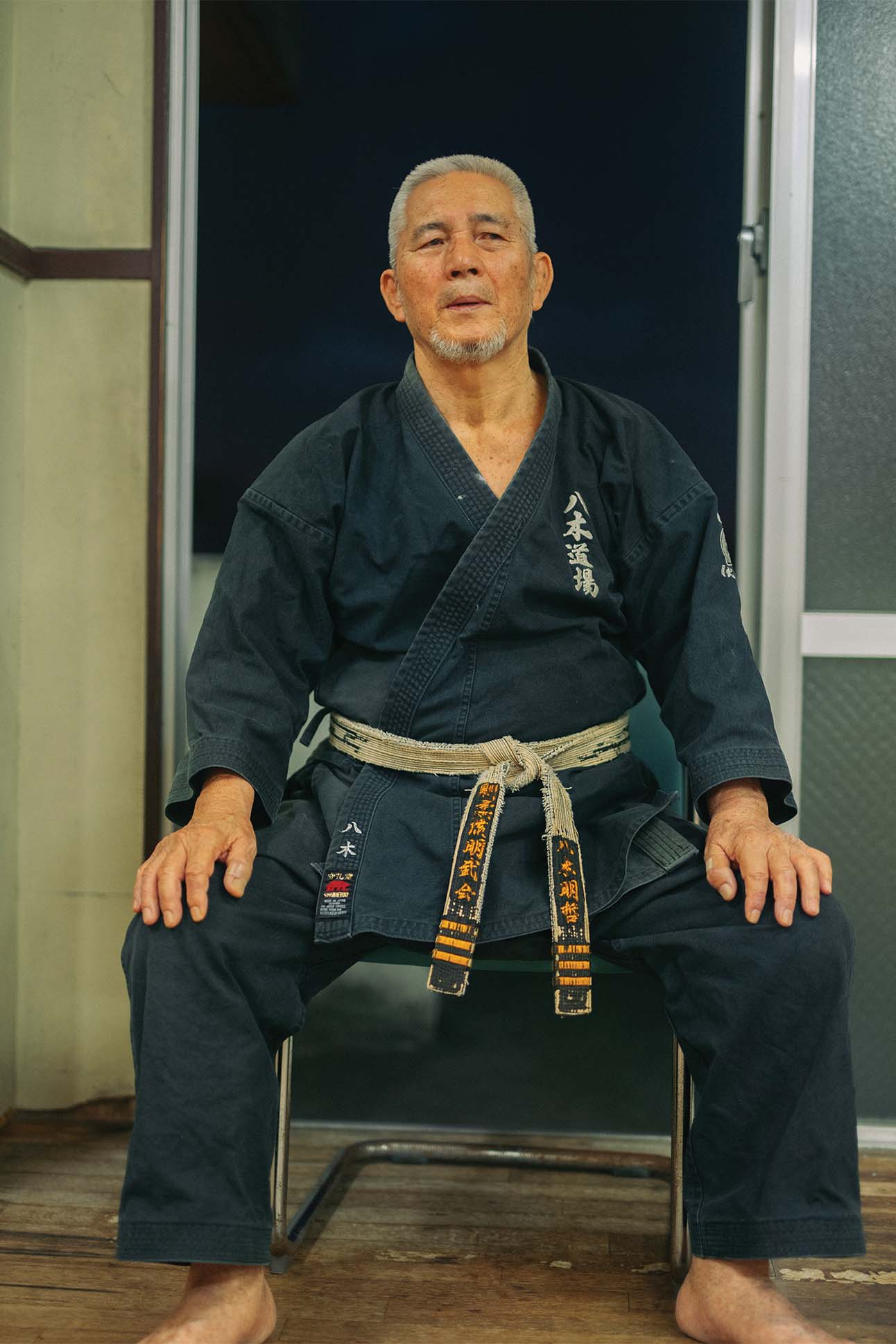 道場の片隅に座っているのは八木明哲、剛柔流空手の師範である。6歳から空手を学び、16歳で空手と柔道の初段を取得する。明哲も他の沖縄空手の師範たちと同じように、日々の仕事に就きながら、空手の修行を続けてきた。しかしながら、彼の真の情熱は空手に注がれ、空手こそが天職だった。60歳で定年退職するまで高校の英語教師を務めた明哲は、自分の人生を占める2つの側面である教育と空手の修行は密接に結びついていると感じている。「教育と武道の目指すところは同じです。それは、世の中に貢献できるような素晴らしい人物になることなのです」と言う。
