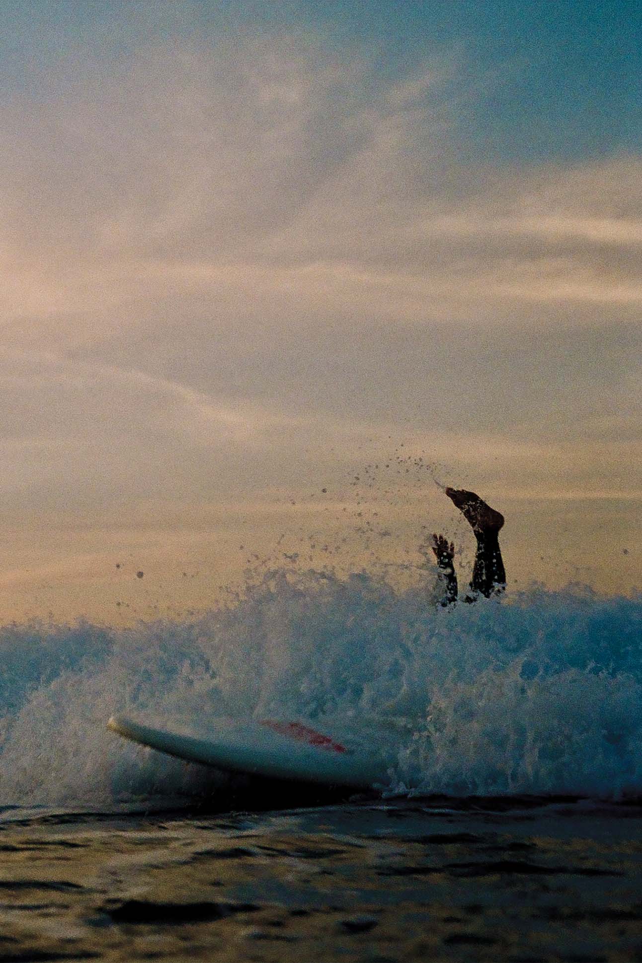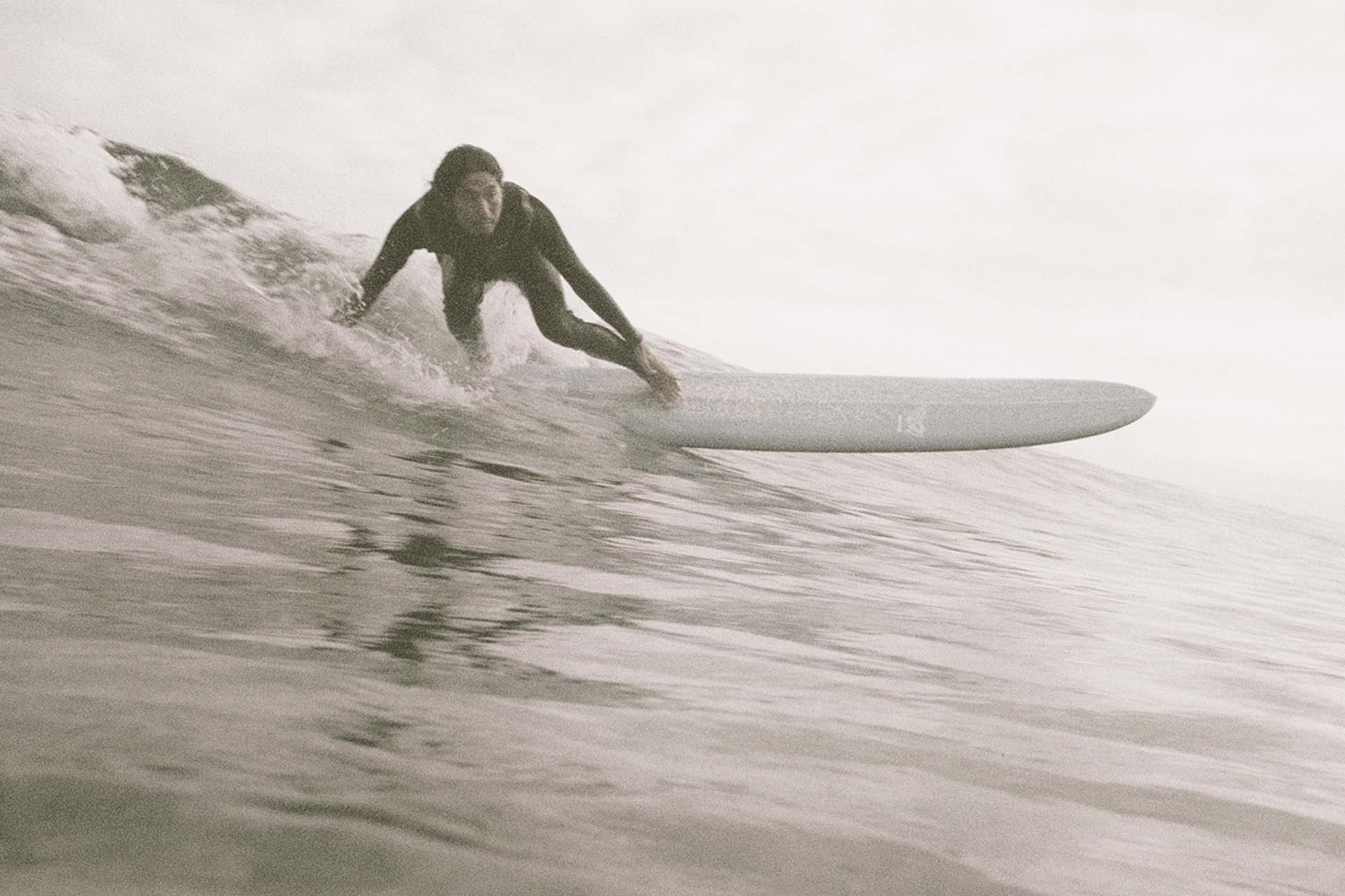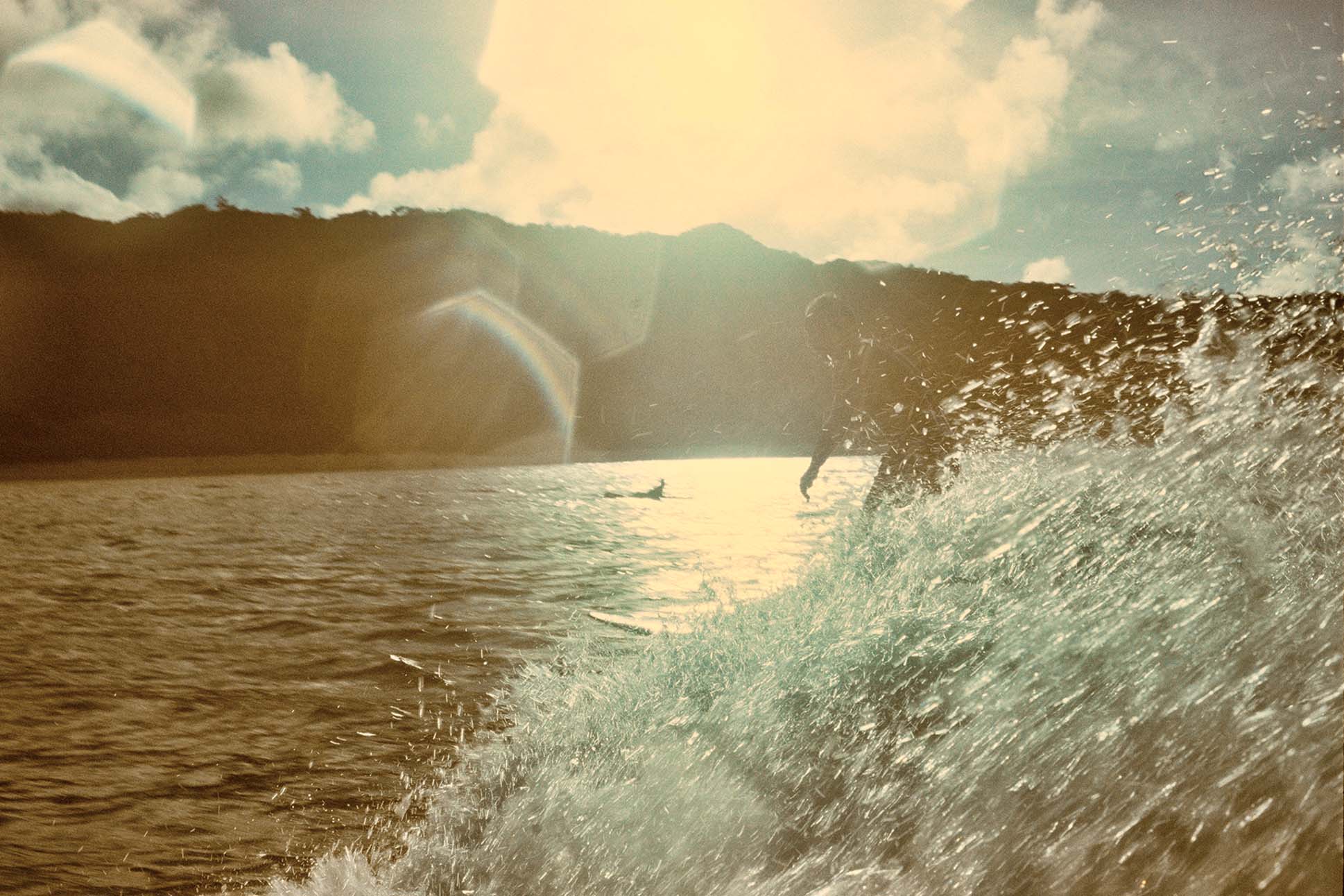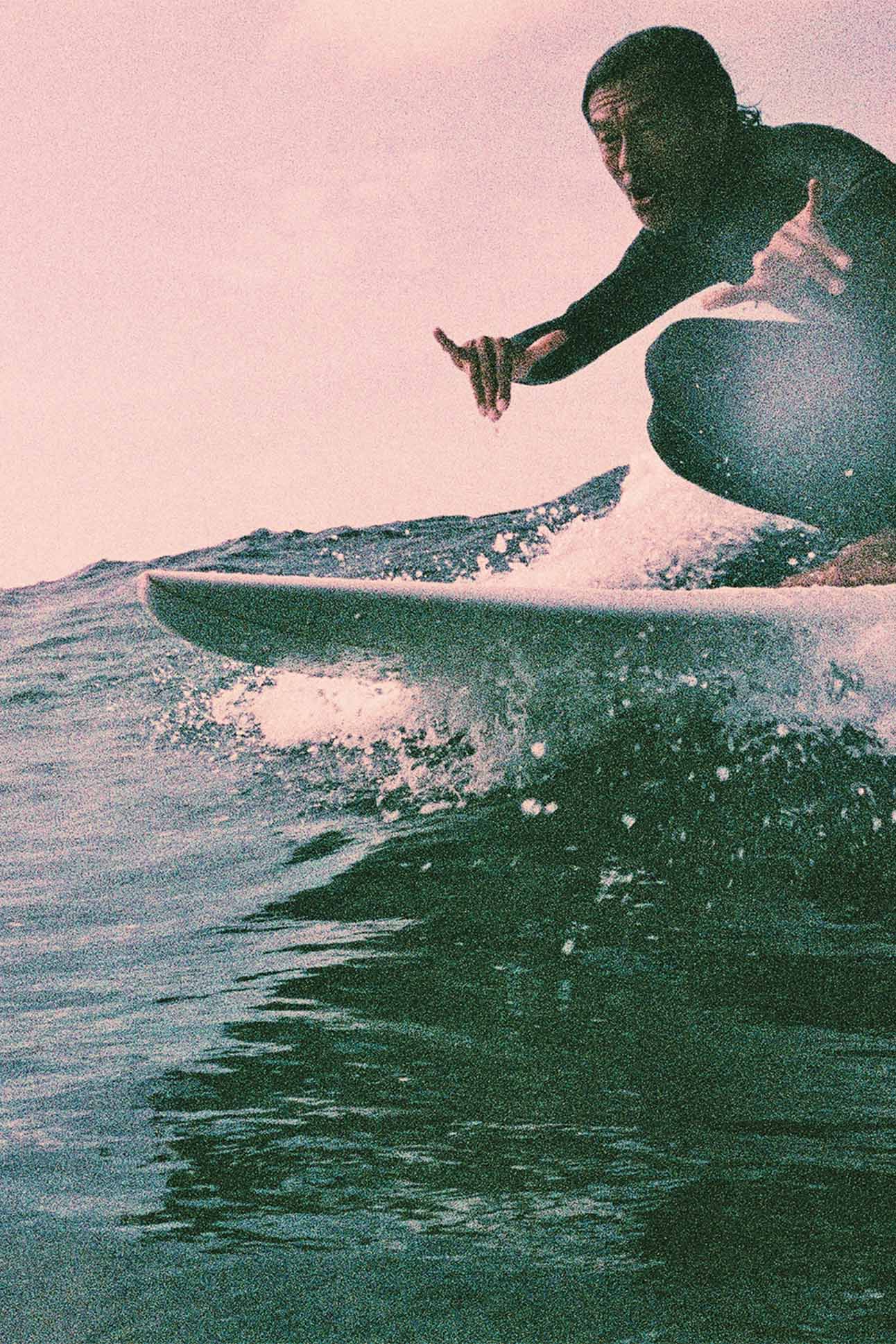IMAGES BYTakuma Chida & Hideki Ito Unlike the vast majority of surf spots in Okinawa, the shallow waters of this one in Motobu offers up swell like a beach break. Woodworker Tetsuya Fujishiro of Nakijin village carves a surfboard fin from Okinawa’s native sendan (chinaberry) tree. Yanbaru surfboard shaper Toshiyuki Nakamura takes a board out for a test ride. His son, Tao, rides a wave. A work in progress at G-Factory, a surfboard factory in Nago. My surf photography is more about emotion and mood than technique. I just ride the wave without thinking. Hideki Ito, Photographer Image by Hideki Ito