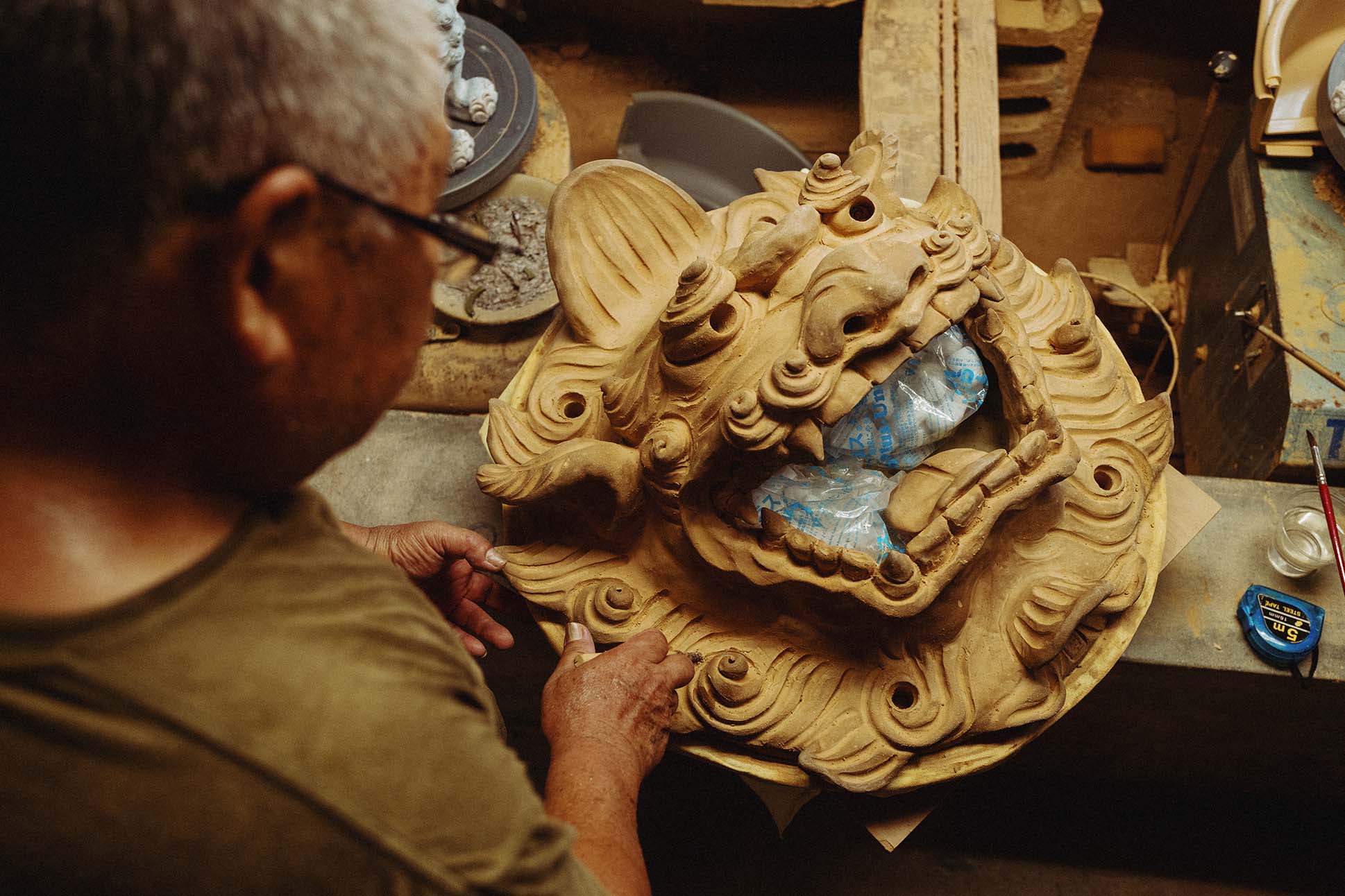 The yachimun dojo’s supervisor, Sayuri Takayasu, believes that people’s personalities reveal themselves in the things they create. “You can often see it in the face of the first shisa they make or how they carve their lines into the clay,” he says. “Everyone’s style is unique to them.”